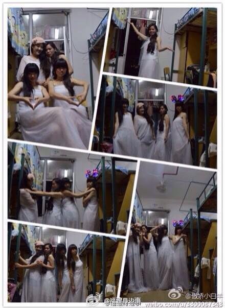 网友“傲娇小白羊”说,这些“礼服”是她们用宿舍白色蚊帐制成的,围巾和披肩则是床帘。“其实我们就是想纪念下大学生活,所以想到了这些陪了我们四年的纪念品。”她们觉得用自己的生活用品来纪念大学生活、纪念大家的舍友情谊更有意义。