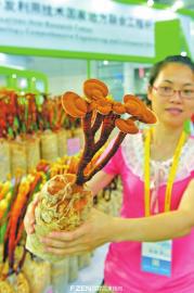 在4号展厅菌草展区,记者看见了纤细修长的菌草如意灵芝。展区相关负责人倪先生表示,这些菌草如意灵芝是利用福建农林大学菌草研究所的菌草栽培灵芝专利技术培育出来的。