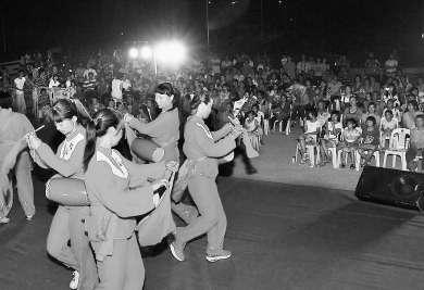 7日,福州寿山乡前洋村的计生广场搭起了大型舞台,各色镁光灯照射下,村民舞蹈队与团员青年志愿者同台联欢,台下数百名老少村民共享了盛夏这场欢乐的文化大餐。
