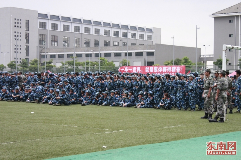 赛车首秀现场,军训新生也来围观。