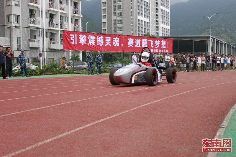 东南网9月25日讯(本网记者 周艾连)“快看快看,好快!”9月25日下午,福建工程学院上千名学子在该校北区体育场围观了一场赛车秀。值得一提的是,这辆造价10多万的赛车是该校41名学生历经半年,自主设计、自主制作的第一辆方程式赛车。