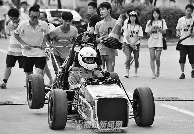 本报讯 历时5个多月,用了近2000个零件,42名学生组成福建工程学院FSAE车队,亲手组装起一辆属于自己的“F1”赛车。10月14日至18日,他们将前往湖北参加中国大学生方程式汽车大赛(简称FSC),与国内外64所大学一起演绎“速度与激情”。