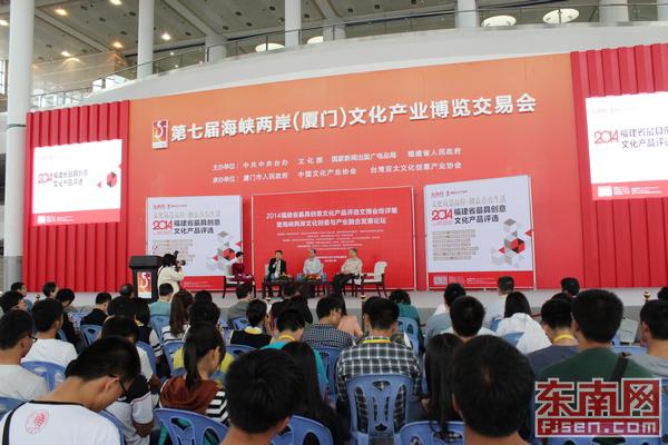 东南网10月26日厦门讯(本网记者 邹玒 卢超颖)今日下午,2014福建省最具创意文化产品评选文博会终评会暨海峡两岸文化创意与产业融合发展论坛在厦门第七届海峡两岸文博会主展厅举行。本次活动由省委宣传部、文改办等部门协调推动,东南网、文化产业网承办,共角逐出10个“最具创意文化奖”及30个优秀奖。获奖名单将于近期在评选官网及相关媒体上予以公布。