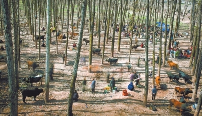 在蔡圣相身旁,放着他获奖的照片《牛市》(The Bull Market)。他介绍说,去年11月,他参加了一个摄影采风团,这幅照片是当时在四川大凉山美姑县牛牛坝镇所拍的作品之一,此前的2013年,他曾在这里拍摄过一张作品,获当年台北国际摄影展铜奖。蔡圣相说,11月14日是当地人赶集的日子,不少人把自家的牛羊赶到树林里的集市来交易。