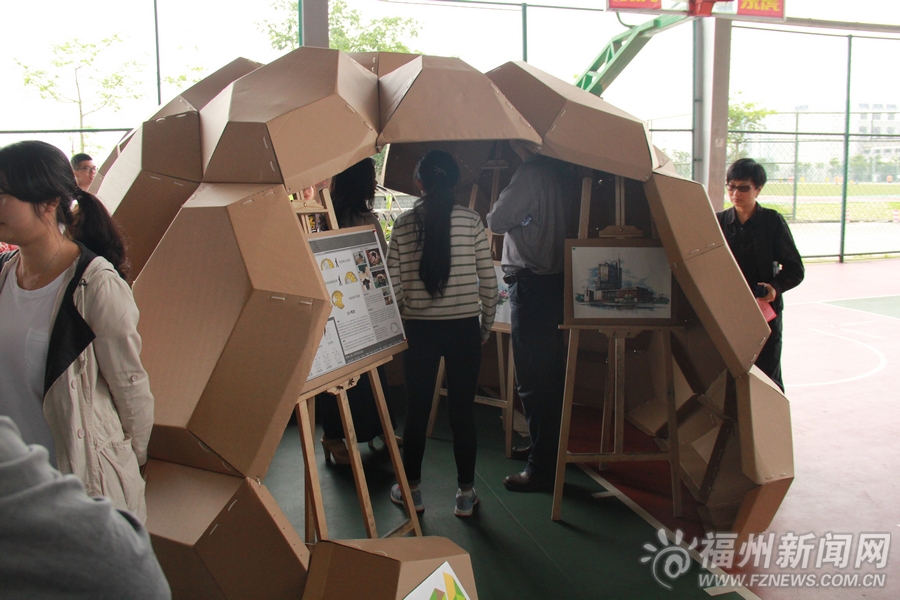 福州新闻网5月26日讯(记者 陈聪文 通讯员 王圆圆)瓦楞纸、竹子、金属连接点等当作建筑材料,如何在24小时内建造一所可以居住的“建筑物”,在福建工程学院的学子眼中,这一切都不是啥难事,建造出来的像“竹排小屋”、“钻石型房子”等实用造型“建筑物”令人眼前一亮。