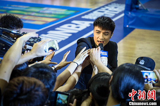 古巨基空降福州,助阵大学生篮球联赛终极对决。李南轩 摄