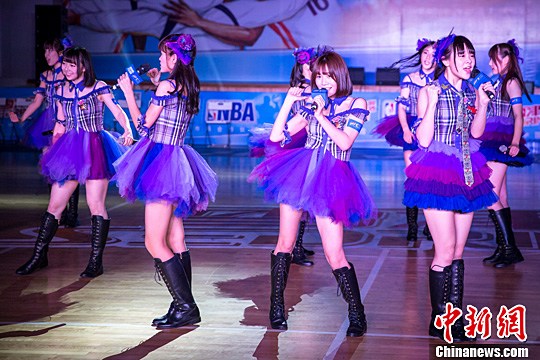 萌妹天团SNH48作为大学生篮球赛终极决战的开场嘉宾 为福州粉丝带来精彩的表演。李南轩 摄