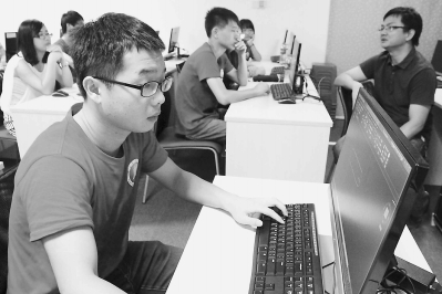 日前,福建工程学院实践团学生前往厦门等地寻访事业有成的优秀校友,学习创业经验。图为实践团成员在优秀校友陈东旭创办的厦门汇识科技咨询有限公司取经,并动手操作最新的行业应用软件。姚瑾 摄