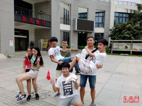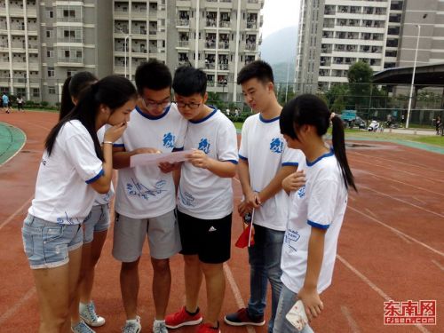 东南网10月8日讯完成公主抱并委托路人拍照、录制青运会加油视频……昨日,福建工程学院北校区田径场上热闹非凡,近五百名大学生共同上演了一场校园版“奔跑吧,兄弟”。