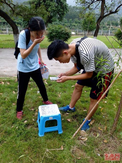 原来,他们正在参加一项以“悦跑苍霞 助力青运”为主题的校园定向赛。根据参赛规则,活动当天由队长随机抽取地图,根据地图找到任务二维码,扫描获取任务。完成任务后,必须拿着主办方事先发放的小彩旗拍照作为证明。最后以“百米定向赛”结束活动,比赛成绩最终按照完成任务的时间先后排名。