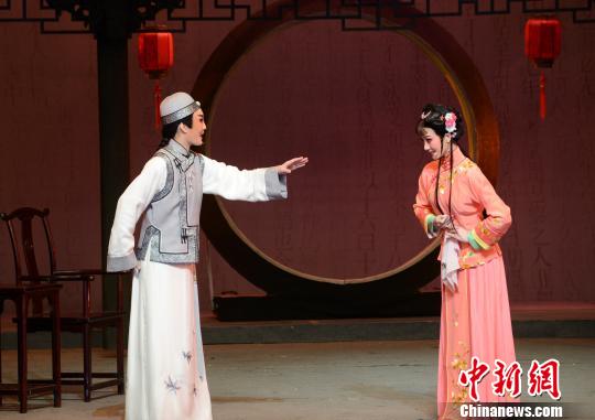 中新网福州11月28日电(记者刘可耕)作为第六届福建艺术节·福建省第26届戏剧会演的参演剧目的越剧《枫落寒江》28日晚在福建芳华剧院上演。