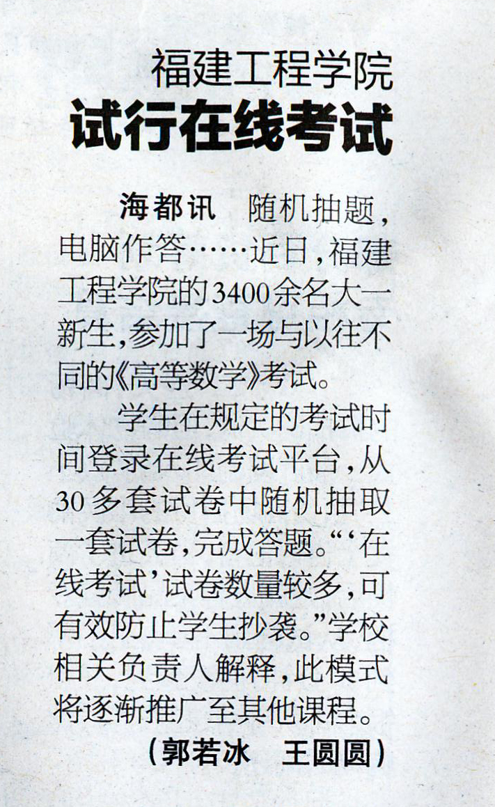《海峡都市报》2015.12.15:福建工程学院试行在线考试