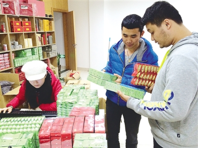 去年年底,由邵武味家集团携手中国美院、福建工程学院、福建农林大学、武夷学院等高校合力打造的闽北最大的互联网+创新创业基地——橙客空间正式对外开放。橙客空间总面积近万平方米,一楼为O2O体验馆;二楼为传统企业孵化基地,三楼为创客团队孵化基地。目前,已经引进福州、三明、闽北等地创业实体达15家。图为三明的大学毕业生熊志强(中)创办的茶业公司正在忙着发货。 (本报记者 摄)