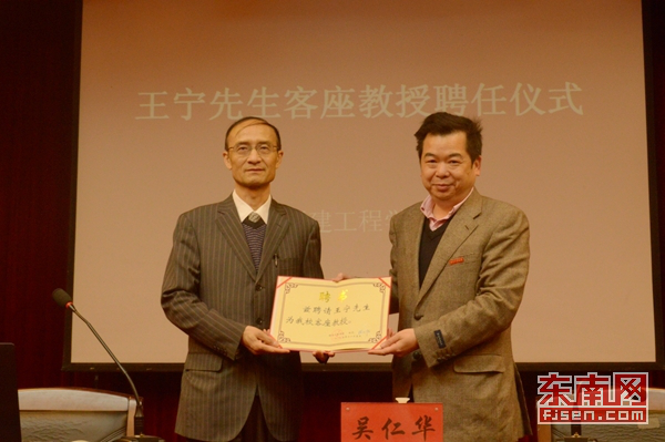 福建工程学院党委书记吴仁华(右)为王宁教授(左)颁发聘书。 东南网3月30日讯(本网校通社大学生记者 吴晓池 通讯员 乐晓斌)3月29日,清华大学学术委员会委员、教育部长江学者特聘教授王宁先生受聘为福建工程学院客座教授,并做客该校苍霞学术讲坛作了题为《重新界定翻译:跨学科和跨文化的视角》的学术讲座。 讲座中,王宁教授以福建工程学院创始人之一的“译坛泰斗”林纾为切入点,结合俄国语言学家雅各布森的语言学见解引出翻译定义的问题,从七个方面重新界定翻译。他根据当前时代环境、高科技网络的飞速发展以及文字功能的萎缩,指出翻译不再只拘泥于传统的文字翻译,而是逐步转向图像翻译以及形式多样化、范围扩大的现象,阐明走出“语言中心主义”的翻译模式势在必行。他说,翻译工作者在翻译过程中所起的作用不仅仅是被动的“忠实”,而是一种能动的“再创造”。 |