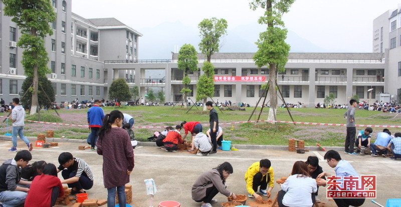 福建工程学院举办砌筑邀请赛 两千多人现场比砌墙技术