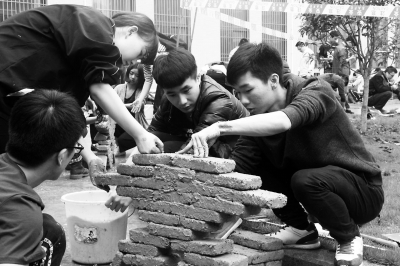 2500多名大学生比赛砌砖
