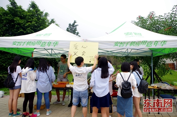 东南网5月26日讯(本网校通社大学生记者 林新雁 黄博泽)“我们要在六一儿童节这一天给福州闽侯县古山州小学的孩子们带去一个惊喜!请为他们献上一份爱心!”5月25日,福建工程学院法学院青年志愿者协会举办了一场以“心语·心愿”为主题的水果义卖活动,吸引了众多学子前来献爱心。