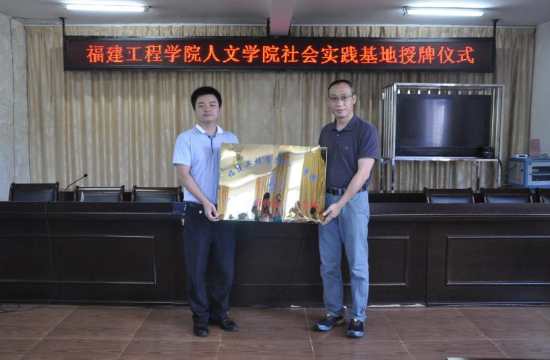 中国网福建76日讯(记者 李永贵 通讯员 乐晓斌 吴晓池)75日上午,福建工程学院人文学院与三明市泰宁县开善乡共建暑期社会实践基地授牌仪式在泰宁县开善乡政府举行,人文学院党委书记黄志铭向开善乡乡长李梅松授牌。