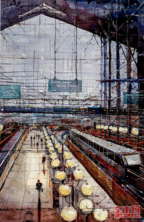 在创作这次的获奖作品《北疆之境》这一系利作品中,他的创作灵感、激情,都来源于对巴黎这座城市的深深的热爱。《天使爱美丽》中的圣拉扎尔火车站是他创作的第一幅,这张作品也是福建省高校手绘的一等奖作品,也由此开启了巴黎系列的创作。巴黎是一个浪漫的城市,巴黎的建筑非常适合用水彩来表达,巴黎的天空时而静如止水时而雾气蒙蒙,而他只想用水彩来让别人看见巴黎的喜怒哀乐。《北疆之境》是继《行走的巴黎》后的一组小系列,这三幅画中,他的技巧与对水彩的感悟都一步一步地提升到一定程度。