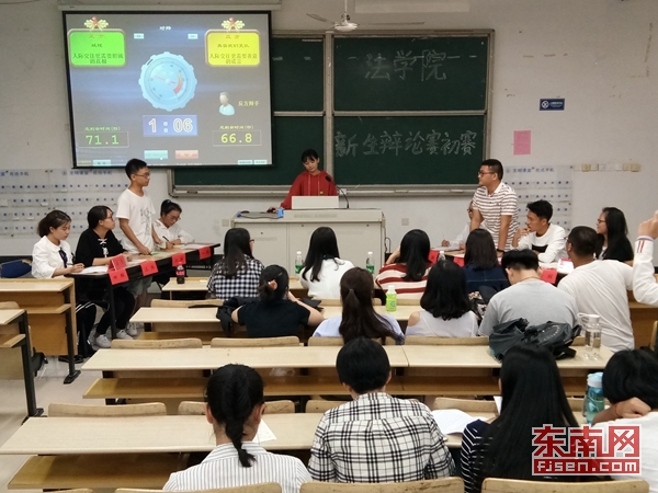 东南网109日讯(本网校通讯社大学生记者郑曼颖)109日晚,法学院于我校旗山北校区北教四-101102举办新生辩论赛。本次活动由法学院团委学生会主办,学习部承办,并特邀优秀辩手付曦、赵志鹏担任评委。此次比赛得到了同学们的广泛关注,16级新生积极参与本次辩论赛。