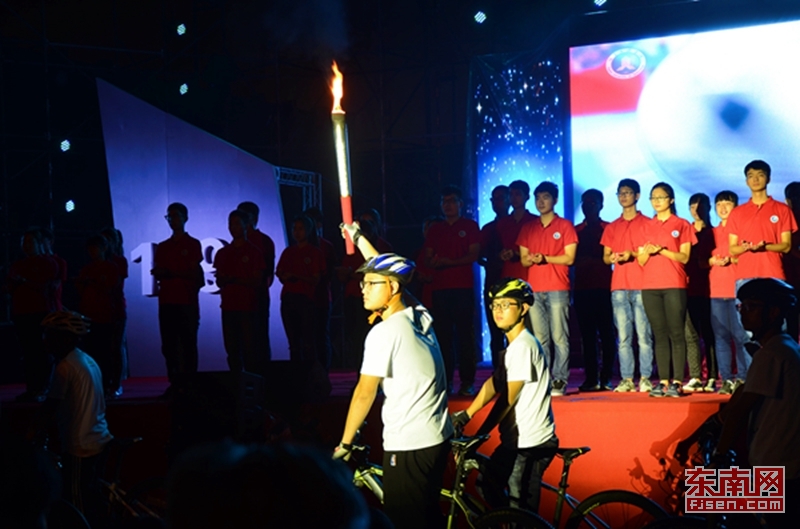 骑行协会的“薪火相传”拉开晚会的序幕,跳跃的圣火,承载着百年苍霞不忘初心积极进取的精神。