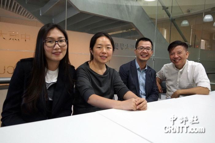三位陆生博士生(左起):吴彦、扈益群、陈全荣,以及中原大学室内设计学系副教授兼艺术中心主任陈历渝。(中评社黄文杰摄)