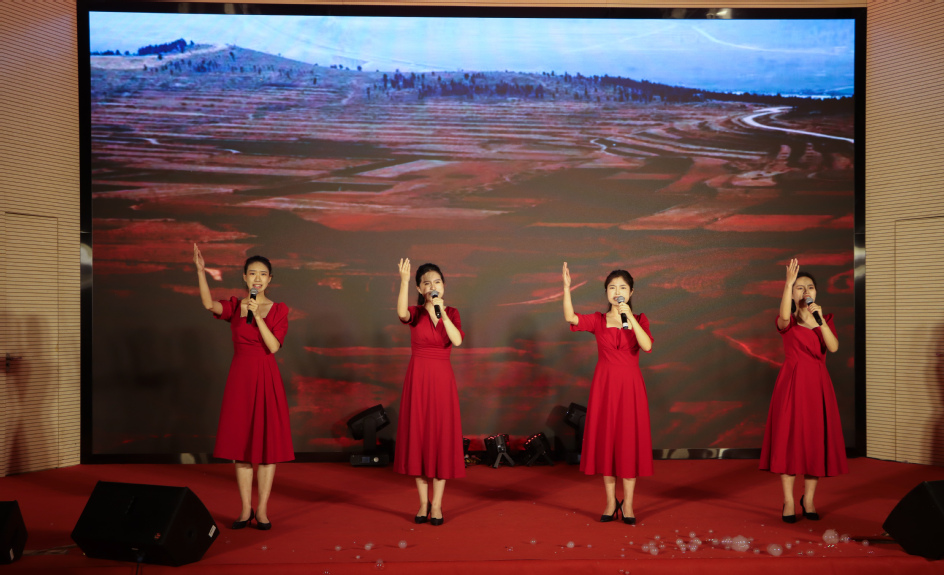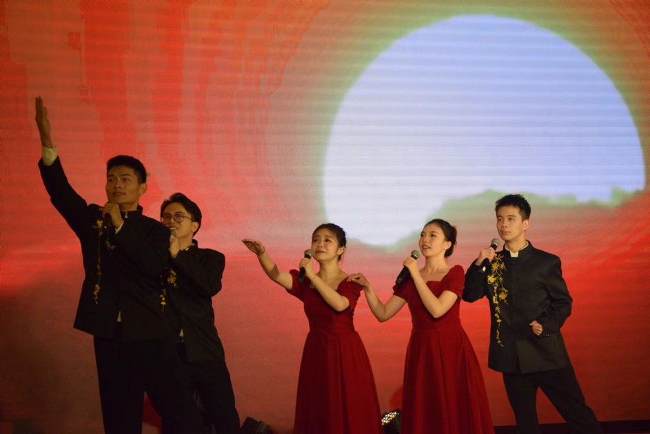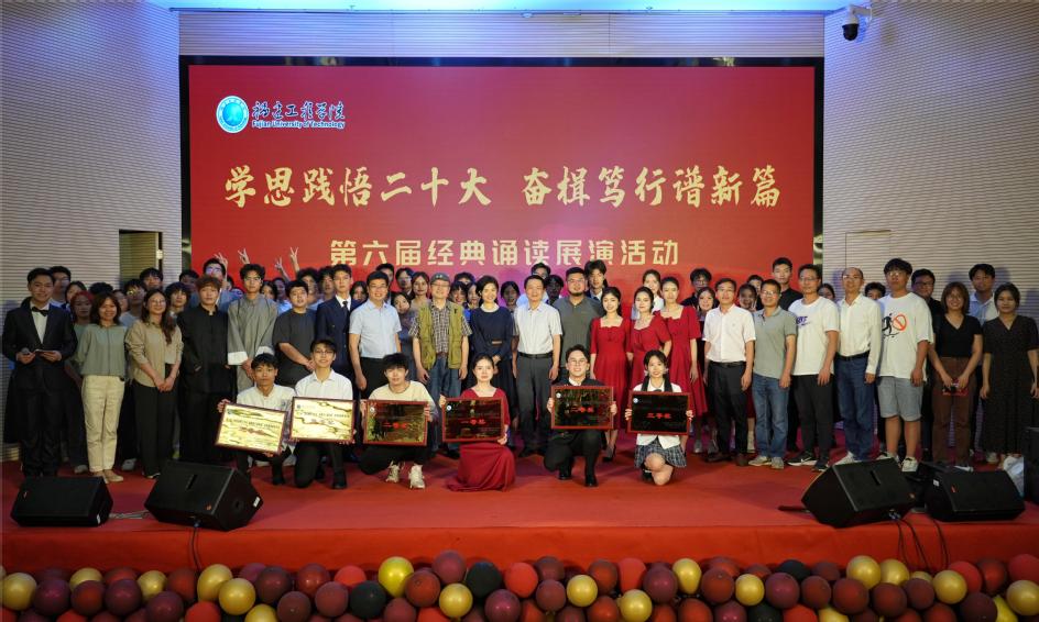 诵读展演活动中,14个学院的参演队伍以经典作品为载体进行朗诵再创作。人文学院带来的《红高粱》作品,感情层层递进,展示着赤诚的心、炽热的情;管理学院朗诵的《血色的自由》通过情景剧表演生动地演绎了林祥谦烈士光荣的一生;互联网经贸学院以一首艾青的《吹号者》,让观众似乎清晰地听到那曾经唤醒了一个民族并激励这个民族奋勇前进的号声......每支参演队伍声情并茂的诵读,以慷慨激昂的声音诵读时代强音,既是一场精彩的视听盛宴,又是一次深刻的主题教育实践活动。